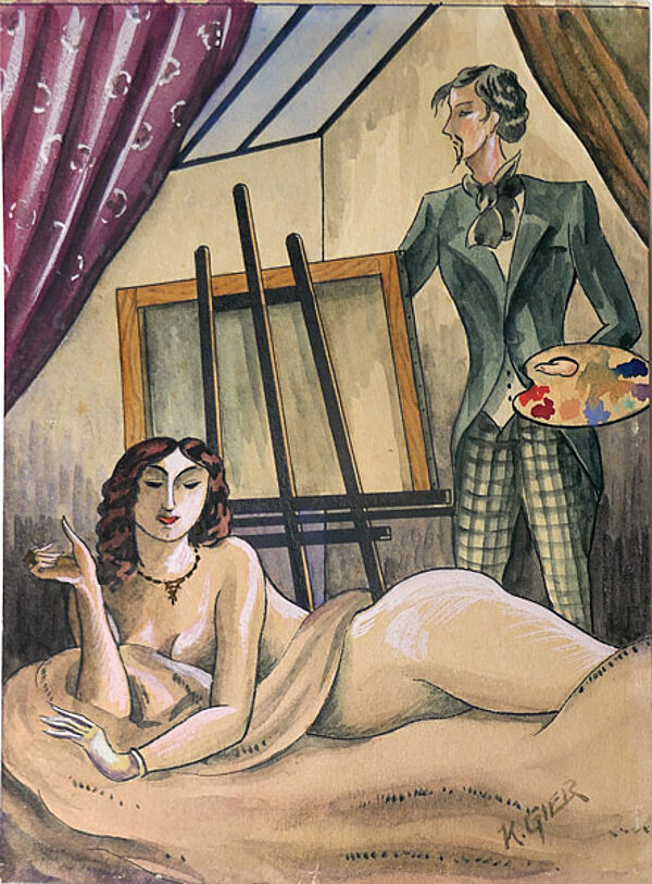 Aquarell: ohne Titel (liegendes weibliches Modell im Atelier)
