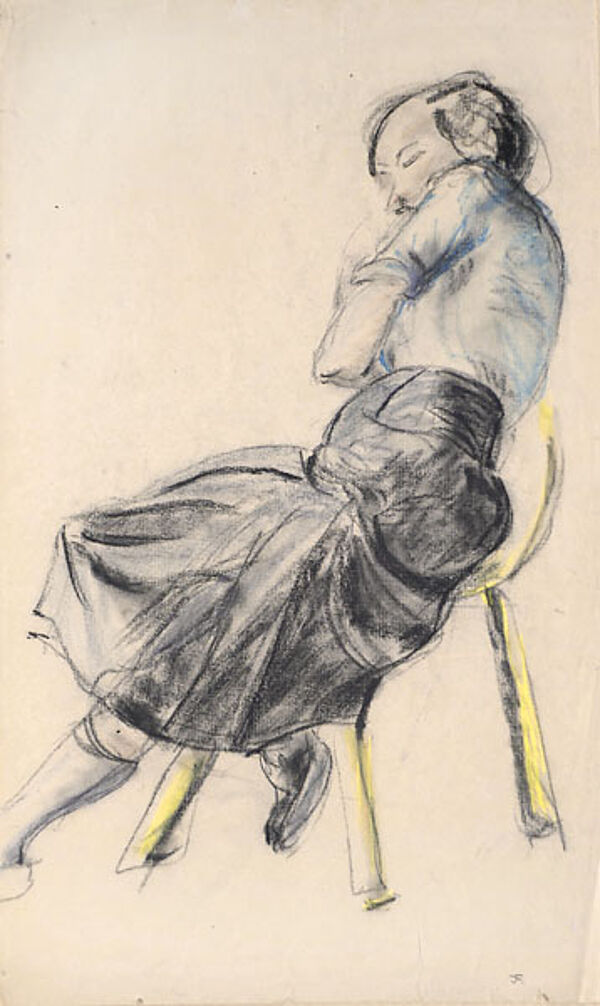 Farbkreidezeichnung: ohne Titel (auf Stuhl sitzendes Mädchen)