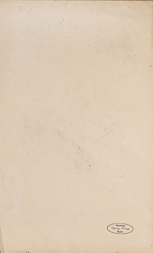 Farbkreidezeichnung auf grauem Tonpapier, rechts unten mit Bleistift monogrammiert. Blattmaße ca. 56,5 x 34 cm, oberer und unterer sowie rechter Randbereich mit kleinen Einrissen, rückseitig Nachlass-Stempel. Wohl 1950er Jahre.