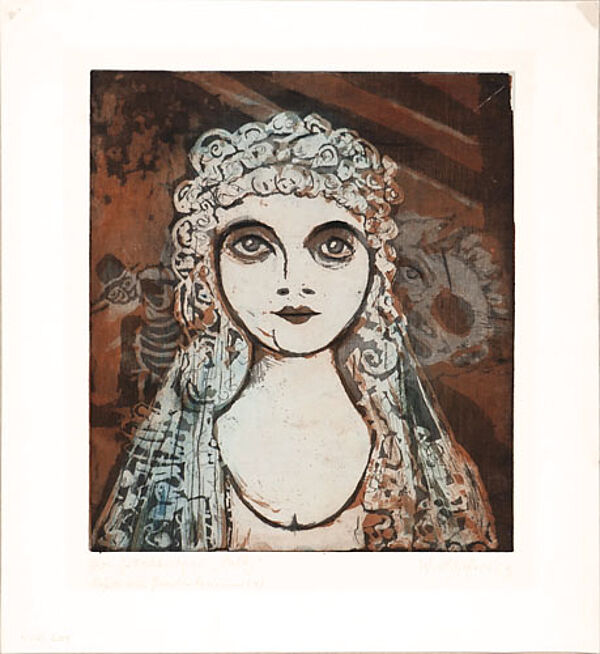 Farblithografie auf dünnem Karton, unterhalb der Darstellung mit Bleistift handsigniert, datiert (19)"59", Bildmaße ca. 24 x 21 cm, Blattmaße ca. 32,5 x 30 cm, geringe Altersspuren. WVZ 609.
