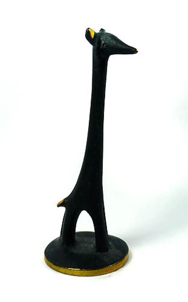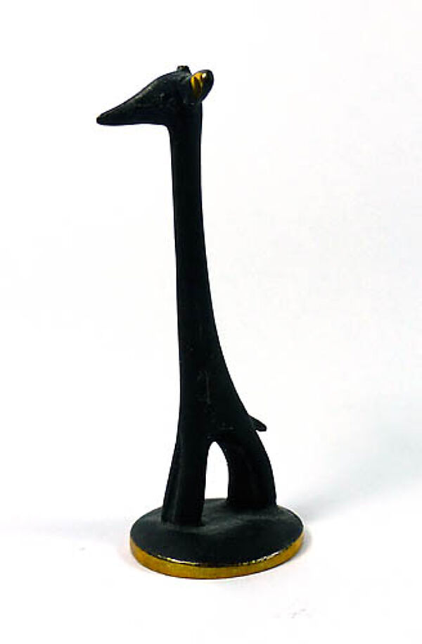 Partiell schwarz patinierter Messingkorpus in Form einer stilisierten Giraffe. Höhe ca. 6,3 cm, geringe Alters- und Gebrauchsspuren. Unterseitig gemarkt. Entwurf wohl 1950er/60er Jahre, Ausführung evtl. später.