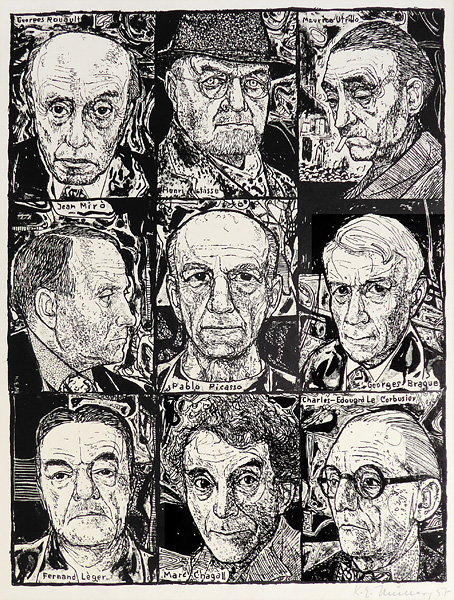 Lithografie: ohne Titel (französische Künstlerkollegen) von 1957