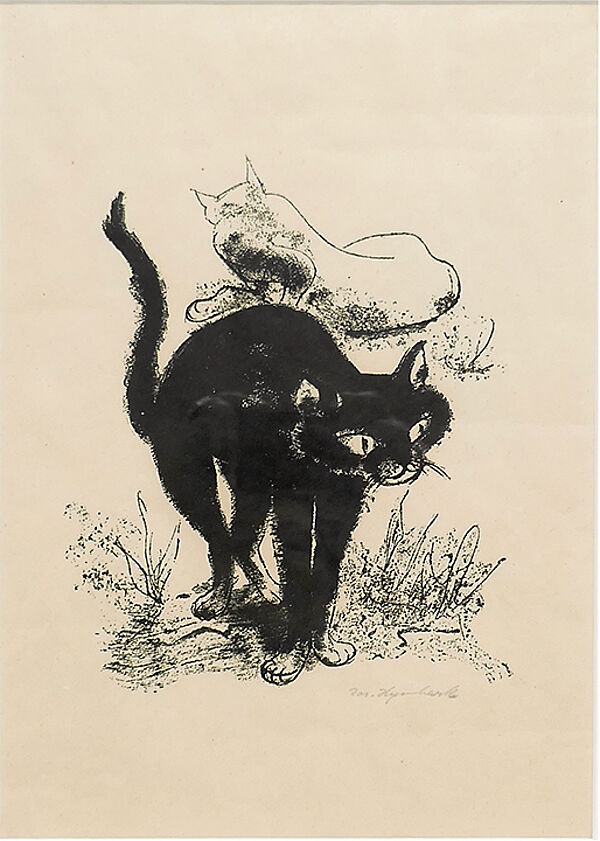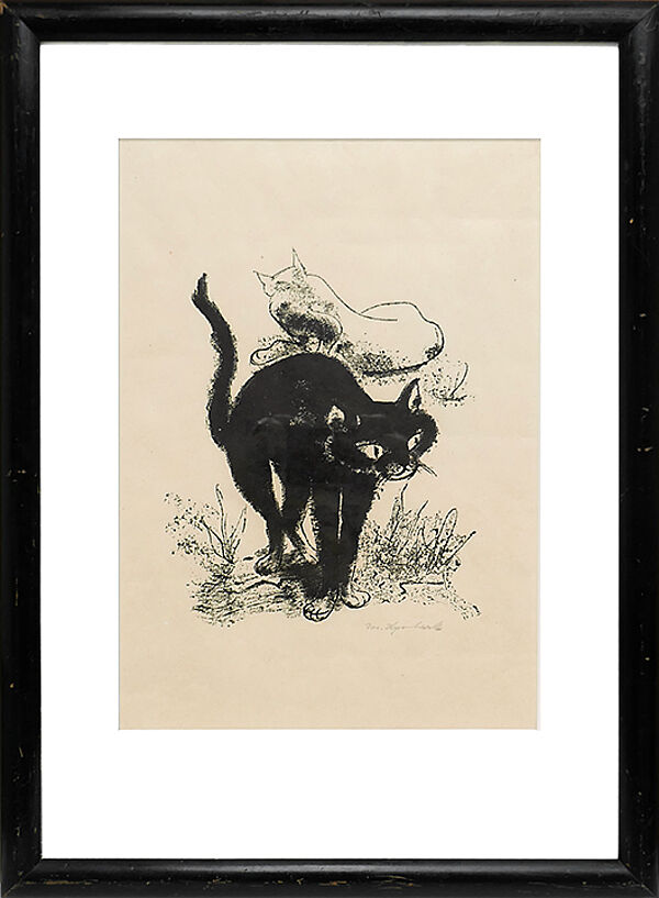 Lithografie auf chamoistonigem Papier, rechts unten mit Bleistift handsigniert. Hinter neuzeitlichem Passepartout. Sichtmaße ca. 34 x 24 cm, Außenmaße der einfachen, leicht gewölbten, schwarz gefassten Holzleiste ca. 52 x 37,5 cm, geringe Altersspuren. Wohl 1950er Jahre.