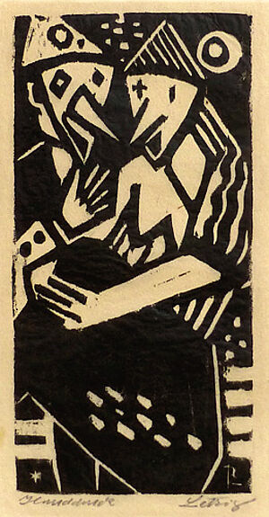 Holzschnitt: ohne Titel (Paar mit Masken)