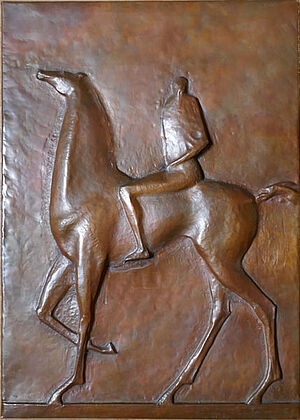 Farblinolschnitt: ohne Titel (Watussi-Rinder-Herde)