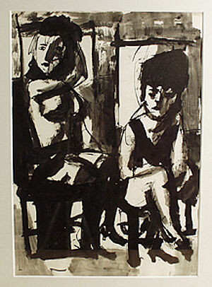 Tuschezeichnung: ohne Titel (zwei sich ankleidende Frauen)