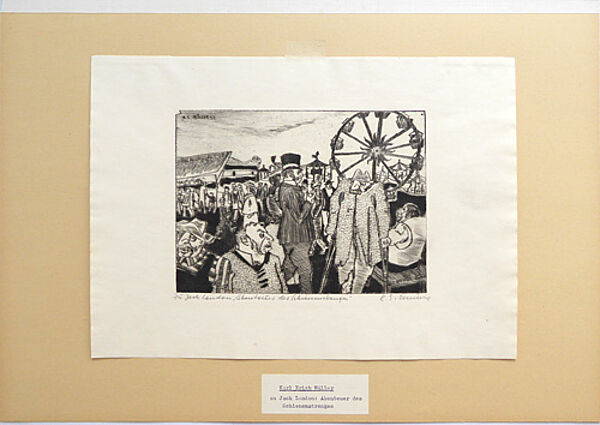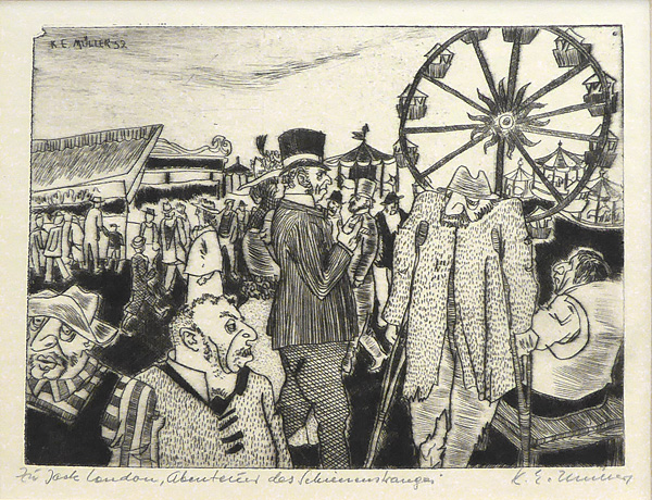 Radierung zu Jack Londons Abenteuer des Schienenstranges von 1952