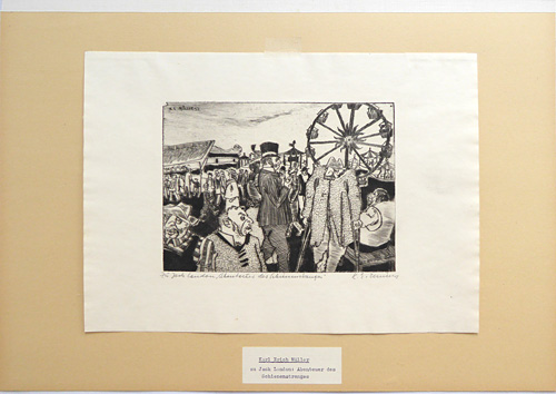 zu Karl Erich Müller: 1946–1948 Studium an der Kunstschule Burg Giebichenstein (Halle) bei Prof. Erwin Hahs. Im Jahr 1947 gehörte er neben u.a. Willi Sitte, Fritz Freitag, Otto Müller, Meinolf Splett und Karl Völker zu den Gründungsmitgliedern der hallischen Künstlergemeinschaft "Die Fähre" und war als einer seiner wichtigsten Vertreter bereits freischaffend tätig (seit 1948 in Halle). Von 1947-50 übernahm er mit seinen Künstlerkollegen Willi Sitte und Herbert Lang eine große künstlerische Arbeit im Mansfelder und Bitterfelder Bergbaugebiet. Seine erste Einzelausstellung hatte Müller 1948 im Marktschlößchen Halle. Es folgten zahlreiche Gruppen- und Einzelausstellungen sowie in den Jahren 1966 bis 1983 zahlreiche Studienreisen nach Indien, Sri Lanka, Nepal und Pakistan. Zahlreiche Bilder von Menschen und Landschaften Südasiens kennzeichnen einen unverwechselbaren Abschnitt in seinem Spätwerk. Für sein künstlerisches Schaffen wurde Müller bereits 1960 mit dem renommierten Käthe-Kollwitz-Preis der Akademie der Künste Berlin ausgezeichnet. Es folgten 1966 und 1969 Kunstpreis des FDGB, 1974 und 1982 der Vaterländische Verdienstorden und 1978 die Johannes-R.-Becher-Medaille. Müller war Dozent an der Deutschen Akademie der Künste der DDR und wurde 1963 mit dem Nationalpreis der DDR ausgezeichnet. Zitat (leicht modifiziert) aus Wikipedia 06/14