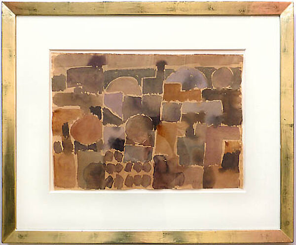 Aquarell auf chamoistonigem Bütten, rechts unten mit Bleistift handsigniert und datiert (19)"68". Das Blatt wurde mit einer älteren, versilberten Galerieleiste gerahmt (ungeöffnet), freigestellt im Passepartout. Blattmaße ca. 42 30 cm, Rahmenaußenmaße ca. 63,5 x 52,5 cm, Rahmenbreite 2,5 cm. Geringe Alters-, Griff- und Lagerspuren.