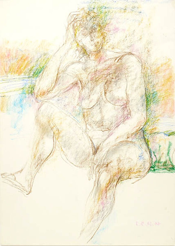 Buntstiftzeichnung: sitzender weiblicher Akt
