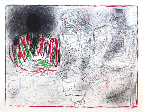 Farblithografie auf fast weißem Papier, rechts unterhalb der Darstellung mit Bleistift handsigniert, im Stein datiert (199"66", rückseitig Stempel: Jahresgabe 1966 Kunstverein in Hamburg. Blattmaße ca. 74,5 x 53,5 cm, geringe Altersspuren, so zeigen sich insbesondere im Randbereich leichte Knickspuren