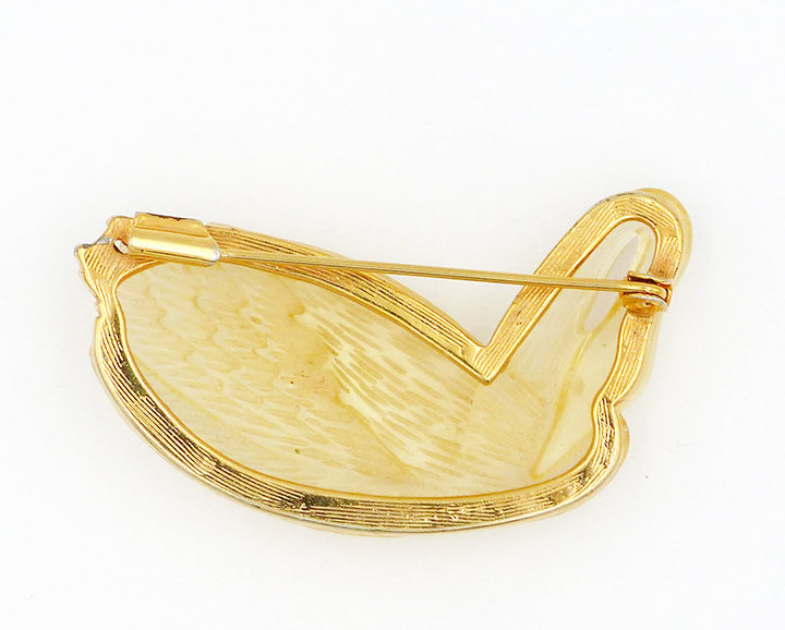 Figürliche Glasbrosche eines Schwanes