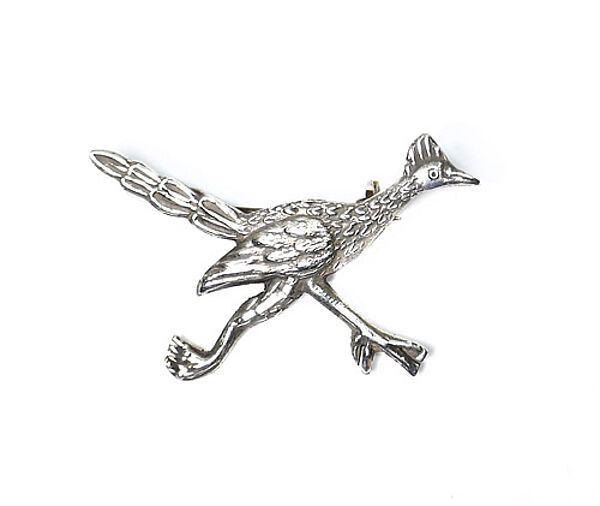 Kleine Silberbrosche in Form eines laufenden Vogels