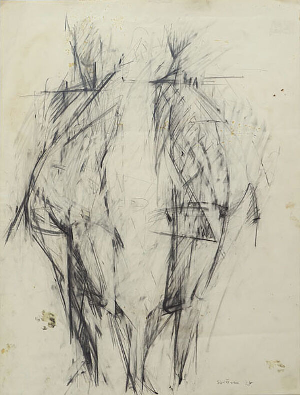 Kohle auf Papier, rechts unten handsigniert und datiert (19)"68". Blattmaße ca. 60 x 45 cm, moderate Alters-, Griff- und Knickspuren. Rückseitig bezeichnet "DFTm 27" (WVZ-Nr.?). Provenienz: aus der Nachlass-Versteigerung eines Berliner Auktionshauses.