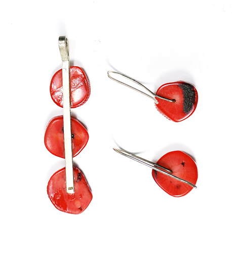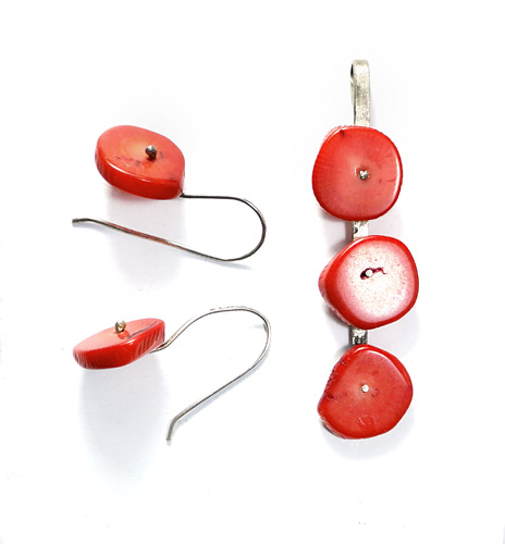 Korallenschmuck-Set aus Anhänger und Ohrringen mit Korallenscheiben