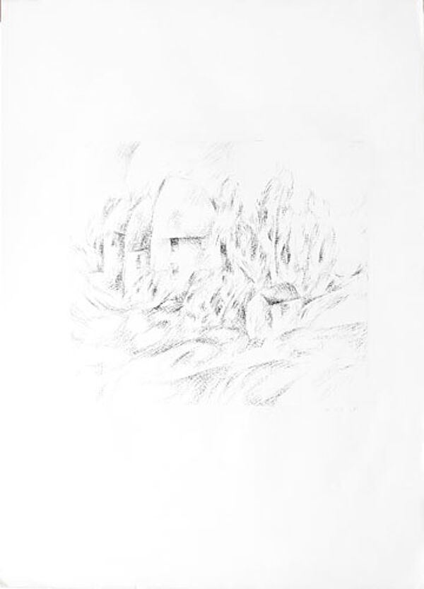 Kreidelithographie auf dünnem Karton, rechts unterhalb der Darstellung mit Bleistift handsigniert und datiert (19)"68", Blattmaße ca. 59,5 x 42 cm, Bildmaße ca. 29 x 26,7 cm, geringe Alters-, Griff- und Altersspuren, insbesondere zeigt der untere Rand zwei kleine Einriße, Stauchung der linken unteren Ecke.
