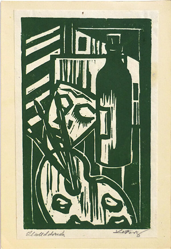 Linolschnitt: ohne Titel (Atelierstillleben)