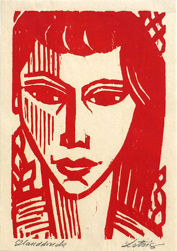 Linolschnittschnitt auf chamoistonigem Papier, montiert auf dünnem, fast weißen Karton. Rechts unterhalb der Darstellung mit Bleistift handsigniert, links bezeichnet "Handdruck". Bildmaße ca. 15,7 x 10,7 cm, Kartonmaße ca. 21,9 x 15,9 cm, geringe Alters-, Griff- und Lagerspuren. Wohl 1970er Jahre.