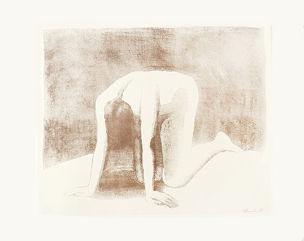 Brauntonige Lithografie auf kräftigem, leicht chamoistonigem Papier, rechts unter der Darstellung mit Bleistift handsigniert und datiert (19)"78", links auflagenbezeichnet "15/15". Blattmaße ca. 73 x 59 cm, Darstellungsmaße ca. 55 x 46 cm, geringe Alters-, Griff- und Lagerspuren. Hinter neuzeitlichem Passepartout.