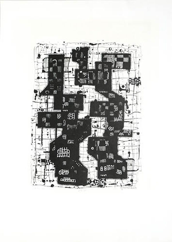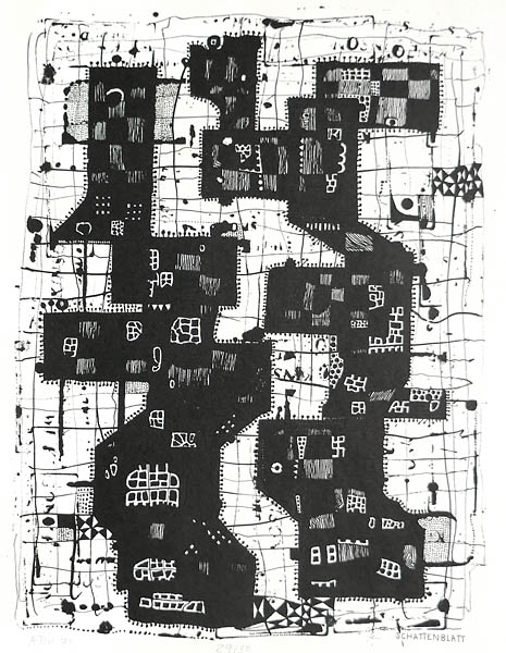 Aus der "Schattenblätter-Jahres-Gabe 1971" der Erfurter Ateliergemeinschaft. Diese hat von 1964–1974 Ausstellungen mit non-konformer und kritischer Kunst organsiert und stellt ein für die damalige Zeit einzigartiges Modell einer selbstbestimmten Produktions- und Künstlergalerie dar.