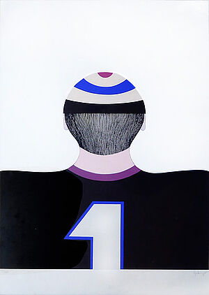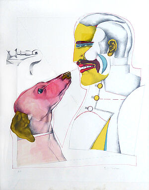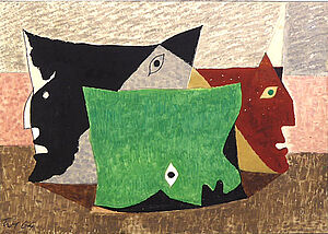 Mischtechnik: ohne Titel (Komposition aus stilisierten Gesichtern)