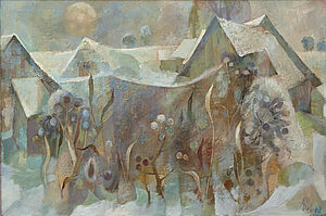 Ölgemälde: ohne Titel (WInterliche Dorflandschaft)
