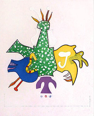 Farbradierung mit Aquatinta und Prägedruck: ohne Titel (phantastisches Tier)