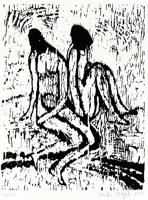 Holzschnitt: ohne Titel (zwei sitzende weibliche Akte)