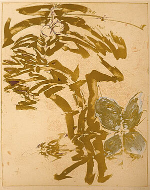 Farbaquatintaradierung: ohne Titel (Komposition in Ocker und Blau)