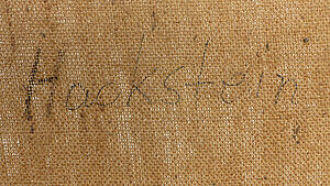 Ölkreidezeichnung: "Häuser zwischen Bäumen"