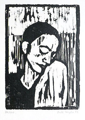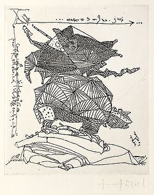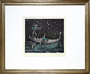 Prägedruck: ohne Titel (liegender weiblicher Akt in Landschaft)