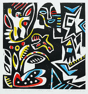 Farblithografie: ohne Titel (wellenartige Abstraktion)