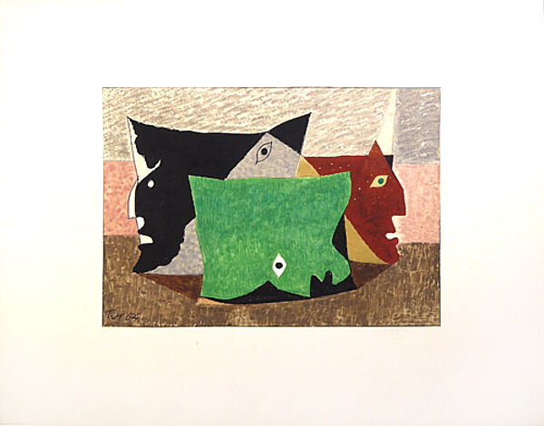 Mischtechnik: ohne Titel (Komposition aus stilisierten Gesichtern)