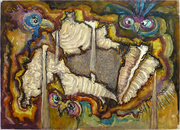 Mischtechnik auf kräftigem Papier, die Arbeit dürfte teilweise von der Künstlergruppe COBRA beeinflusst worden sein. Unsigniert, undatiert (Provinienz: aus einem Konvolut des Künstlers, erworben im niederländischen Auktionshaus Middelburgs Veilinghuis, dort vermutlich direkt aus dem Nachlasss des Künstlers eingeliefert). Blattmaße ca. 62,5 x 45 cm, geringe Griff- und Altersspuren. Wohl 1960er Jahre.