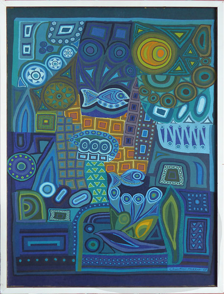 Siebdruck auf LW: ohne Titel (Formen, Farben, Fische)