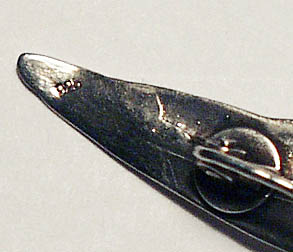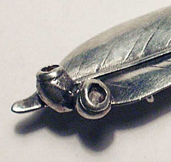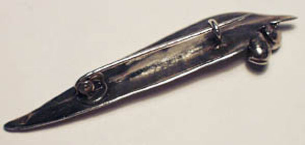 Silberkorpus (925er) in Form eines stilisierten Blattes mit angesetzten Beeren, Länge ca. 6 cm, ungeputzter Zustand. Einfache Broschierung. Ungemarkt, Einzelanfertigung, vermutlich 70er Jahre.