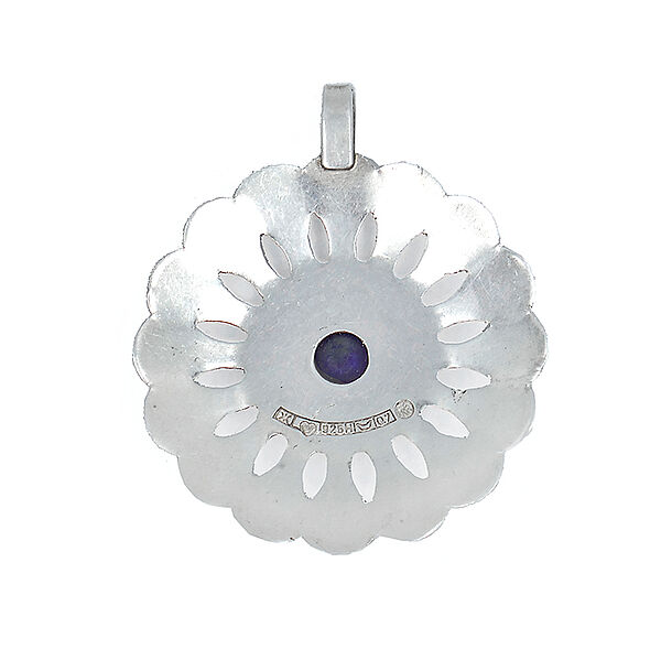 Silberner Anhänger in Form einer stilisierten Blüte mit Amethyst