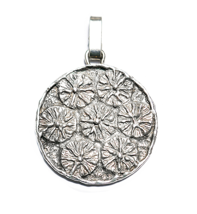 Silberner Anhänger mit abstrahiertem Blütendekor