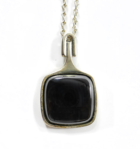 Silberner Anhänger mit Hämatit an Kette