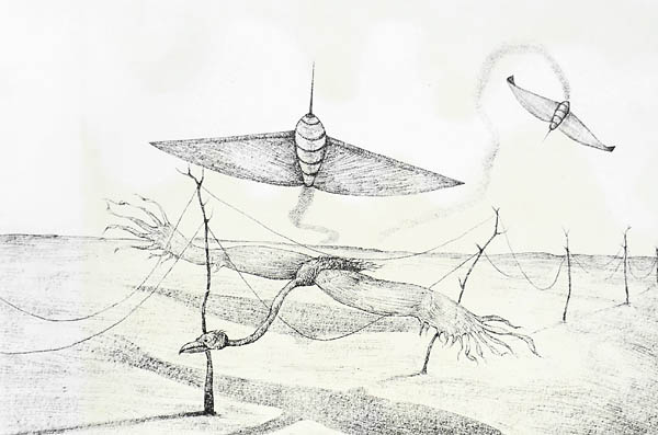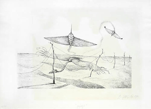 Aus der "Schattenblätter-Jahres-Gabe 1971" der Erfurter Ateliergemeinschaft. Diese hat von 1964–1974 Ausstellungen mit non-konformer und kritischer Kunst organsiert und stellt ein für die damalige Zeit einzigartiges Modell einer selbstbestimmten Produktions- und Künstlergalerie dar.