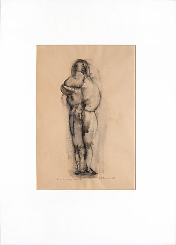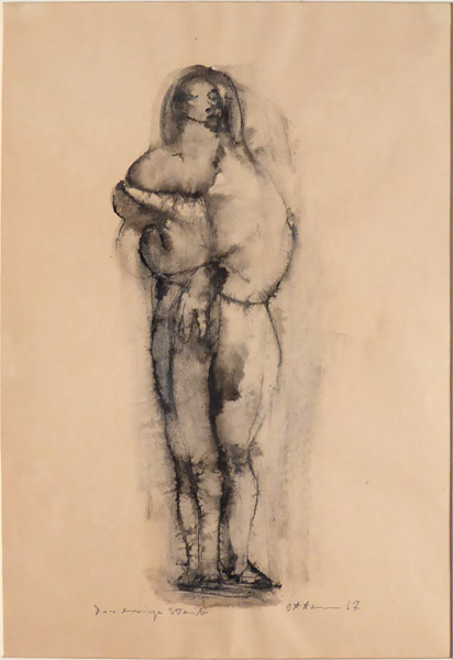 Tusche auf ockertonigem Papier, im neuzeitlichen Passepartout. Unter der Darstellung mit Bleistift signiert, datiert (19)"67" und betitelt. Blattmaße ca. 43,5 x 32 cm, Passepartout ca. 70 x 50 cm, geringe Alters-, Griff- und Lagerspuren.