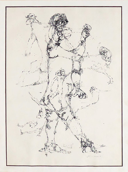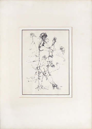 Pinsel und Feder in Schwarz auf Velin, im neueren Passepartout, rechts unten signiert und datiert (19)"61". Blattmaße ca. 34,5 x 25 cm, Passepartout ca. 70 x 50 cm, geringe Alters-, Griff- und Lagerspuren.