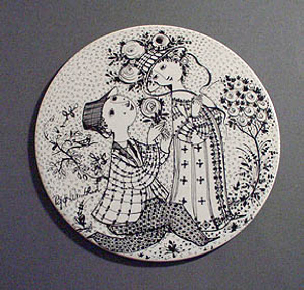 Kreisform, Motiv eines Paares den Monat Juni darstellend, D. 15cm, gestempelt Rosenthal, sign. Björn Wiinblad, Entwurf Björn Wiinblad, 1970er