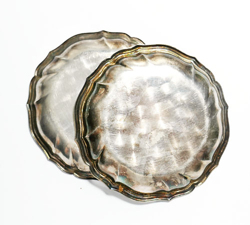 2 silberne Untersetzer