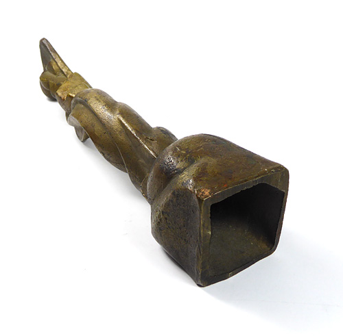 Bronzekorpus mit alter, goldfarbener Fassung. Unsigniert. Höhe ca. 30,5 cm, moderate Patina und sichtbare Altersspuren, insbesondere zeigen sich Bereibungen der Fassung sowie leichte Bestoßungen des Standes. Der Guß wurde nur teilweise bzw. unsauber beschliffen, der Gusskrat ist z.T. noch sichtbar (evtl. Probeguss), dürfte aber aus der Zeit des Entwurfs, vermutlich zwischen 1918 bis 25 stammen.