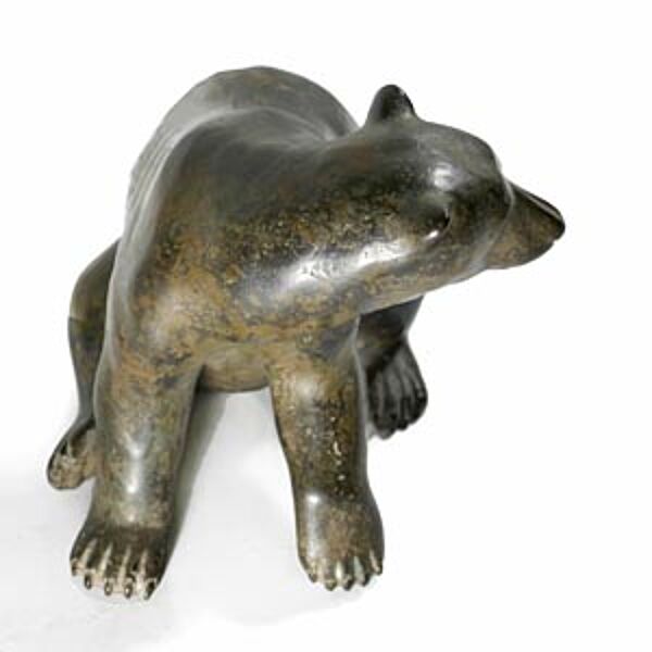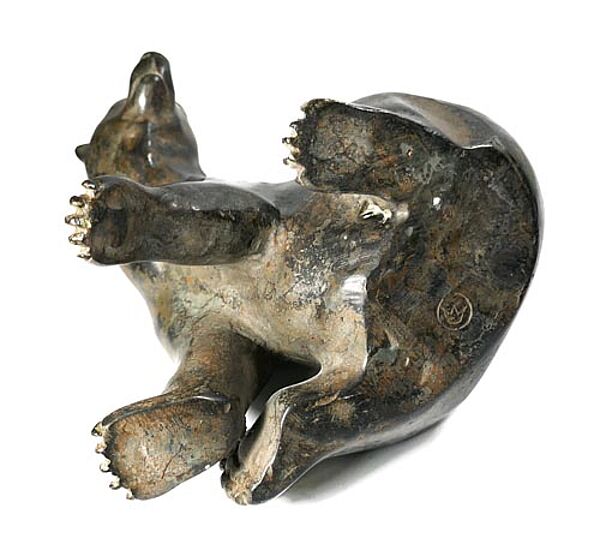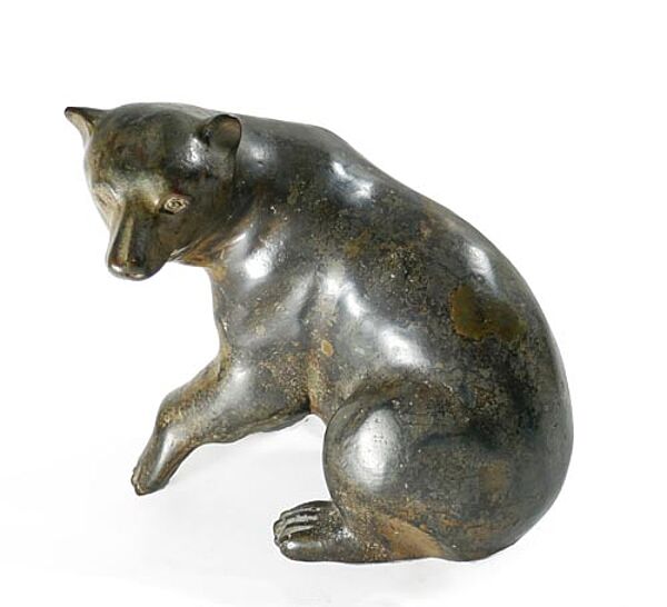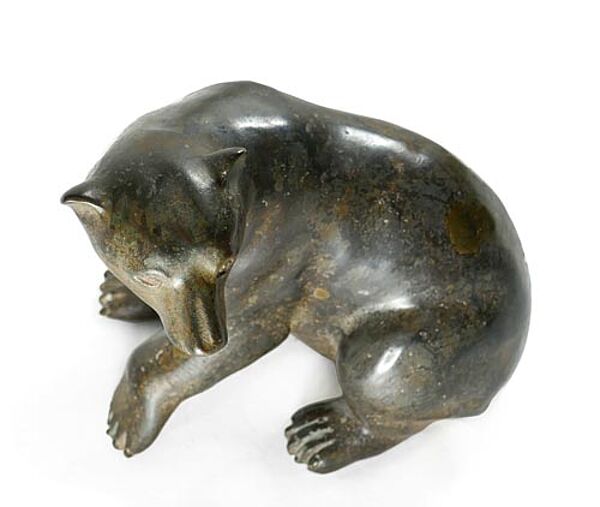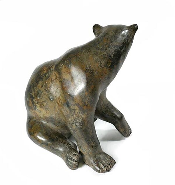 Bronzeguss, bräunlich patiniert. Höhe ca. 13,5 cm, geringe Altersspuren. Unterseitig gemarkt mit Kronensymbol im Kreis (ungedeutet), wohl Deutschland oder Skandinavien der 1920er, 30er Jahre.