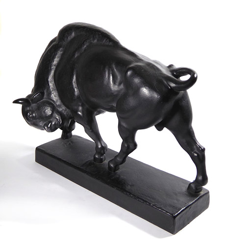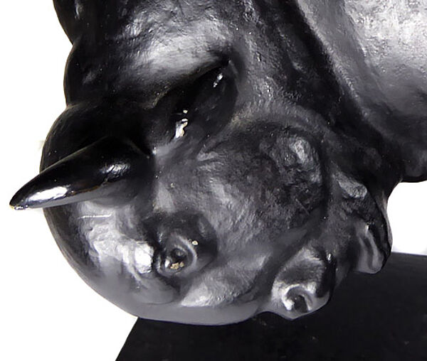 Geschwärzter Eisenguss mit angegossener, rechteckiger Plinte. Unterseitig Buderusaufkleber. Höhe ca. 26 cm, Länge ca. 32 cm. Kaum Altersspuren. Wohl 1930er Jahre.