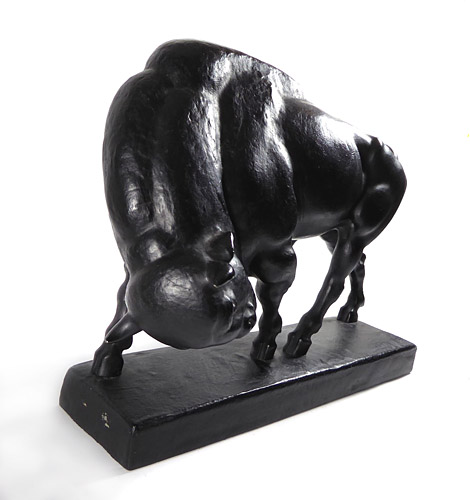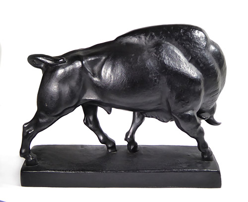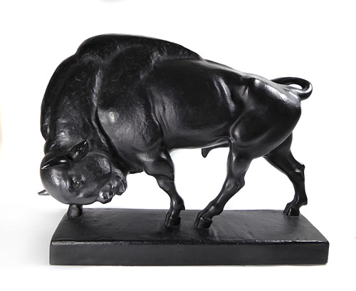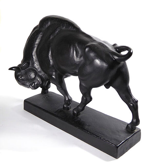 Die Eisenskulptur erinnert stilistisch stark an das 1934 in der Schorfheide errichtete, von Max Esser entworfene Wisentdenkmal aus Ton bzw. an die im selben Jahr erschienene Wisent-Silbermedaille Essers. Daher kann mit an Sicherheit grenzender Wahrscheinlichkeit unsere Eisenguss-Plastik Max Esser zugeschrieben werden, vermutlich ebenfalls in den 1930er Jahren entstanden (1934).