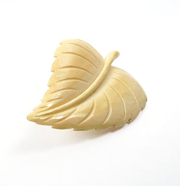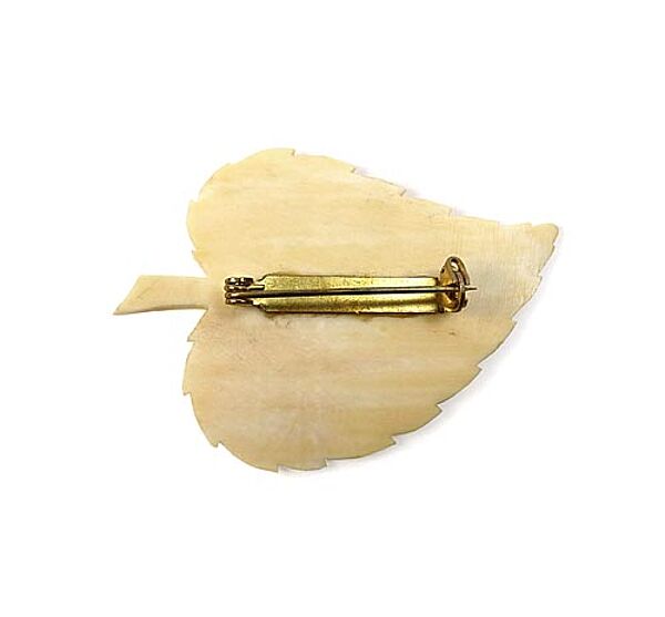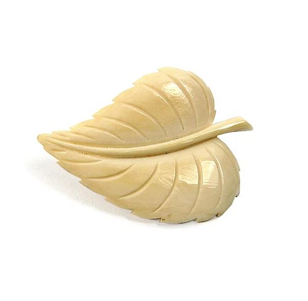 Geschnitzter Elfenbeinkorpus in Form eines Blattes.
