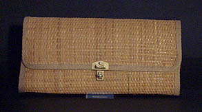 Korpus aus mit geflochtenem Bast besetztem Tuck, vorderseitig kleiner goldfarbener Verschluß. Maße ca. 18 x 35 cm. Wohl 1920er Jahre.